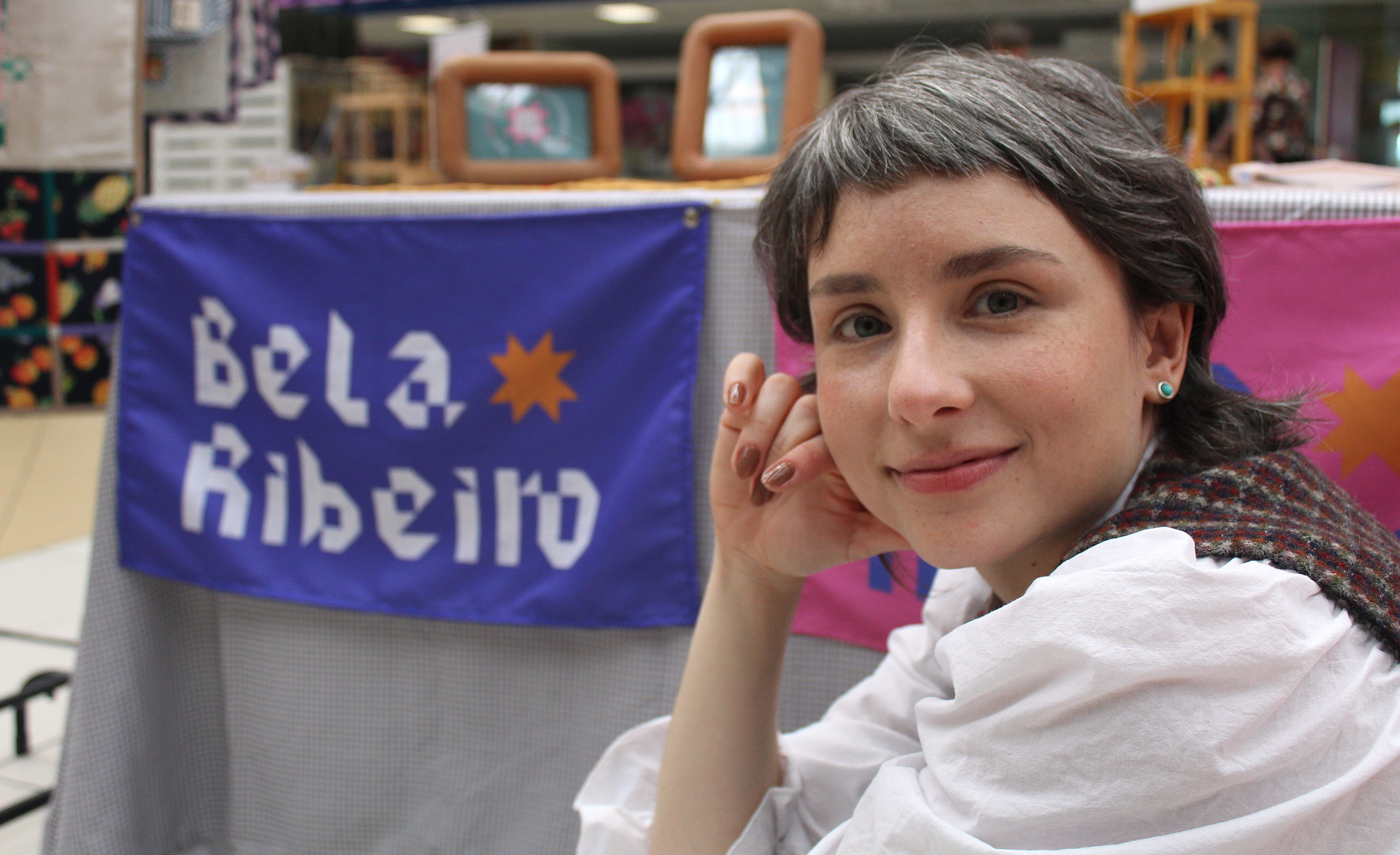 Após deixar a carreira como professora de arte na educação formal, Isabela dedica-se ao seu ateliê, onde cria peças têxteis trabalhadas no detalhamento e combinação de técnicas e estilos.